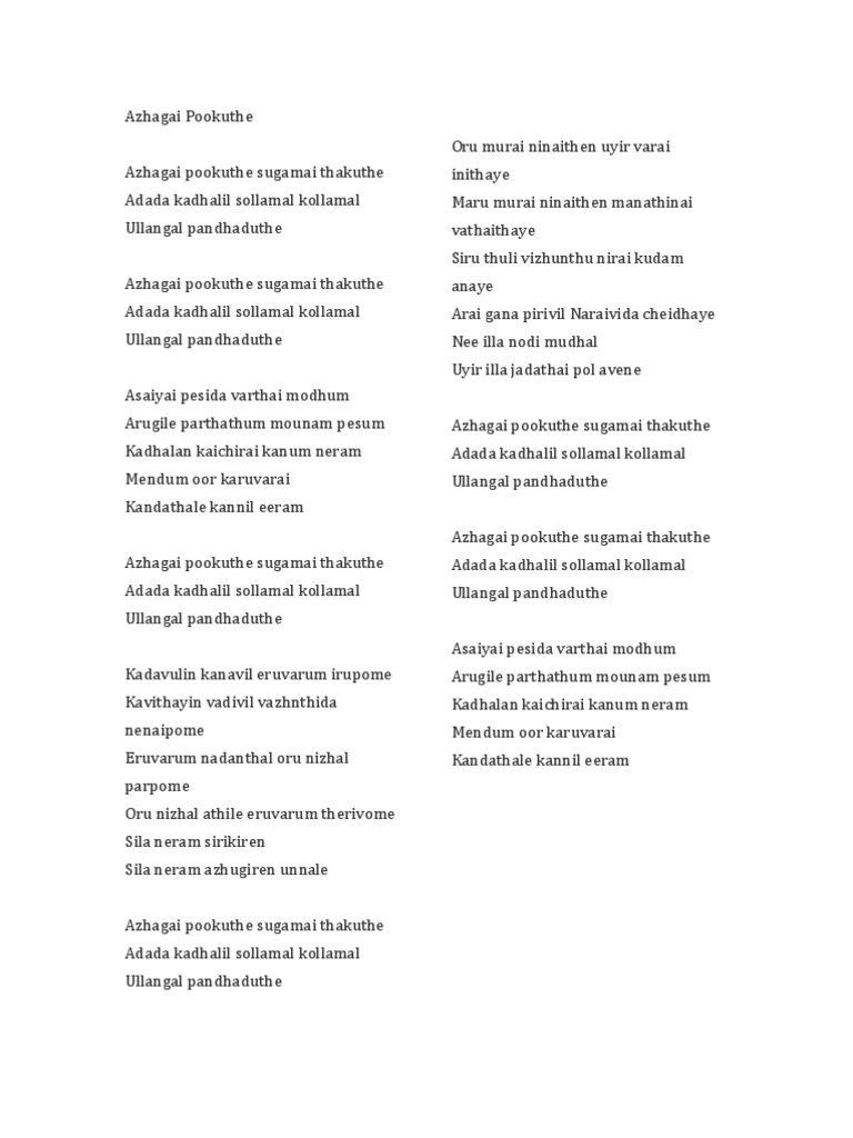 Alagai Pookuthe Song Lyrics : Alagai pookuthe sugamai thakuthe video song.