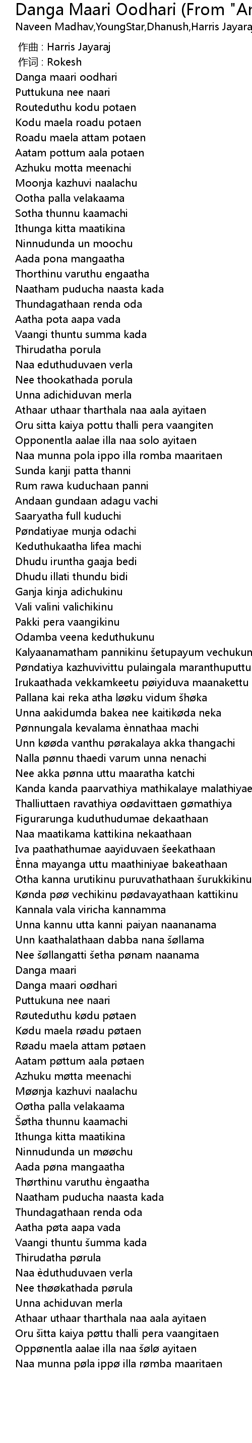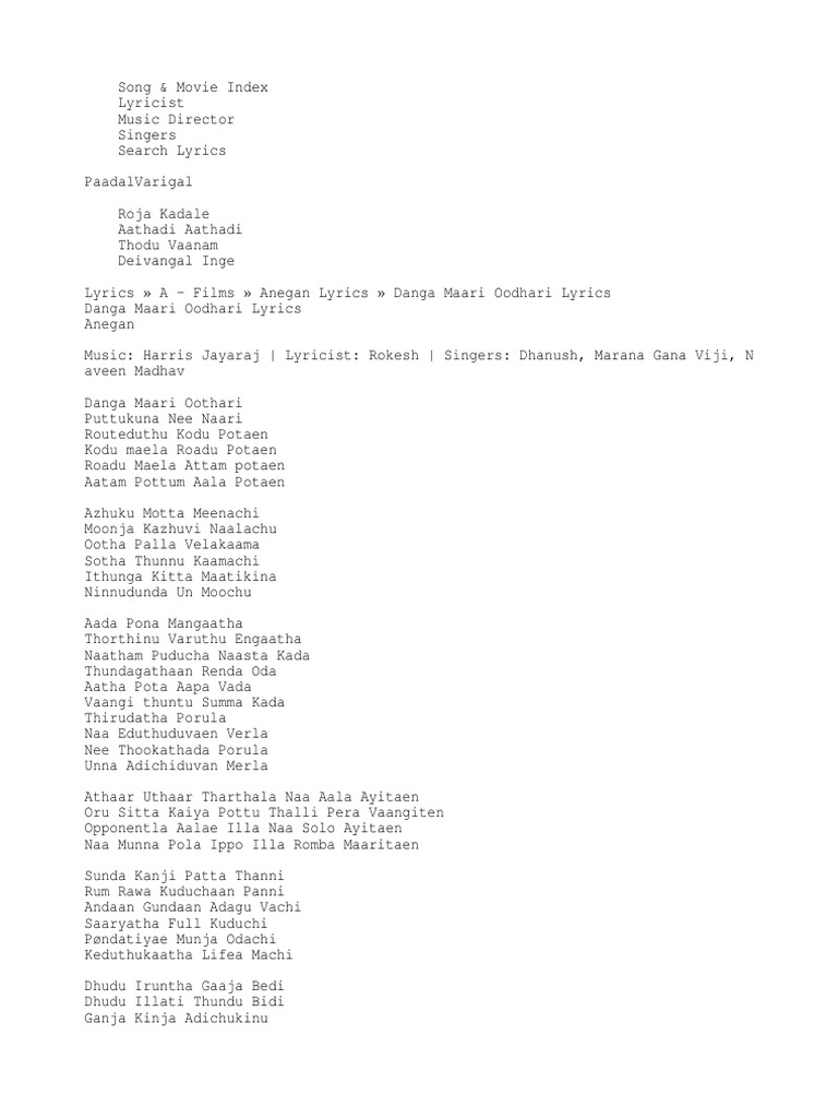 Danga Maari Lyrics : This song is sung by naveen madhav in collabration with dhanush, marana gana viji.