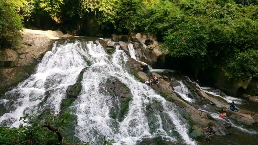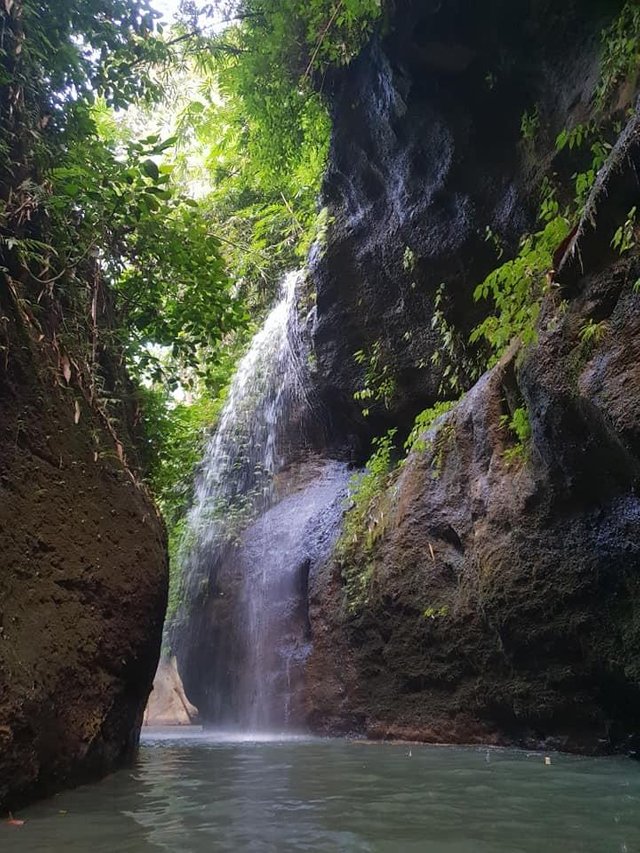 Goa Rang Reng Waterfall / You can either explore the sacred cave, which is only possible with a guide, or head over to the top of the waterfall with the help of ropes attached to the rocks.