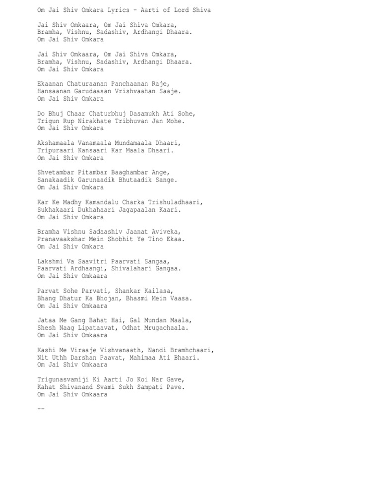 Om Jai Shiv Omkara Aarti Lyrics In English Lyricswalls Best shiv aarti app with the following feature: