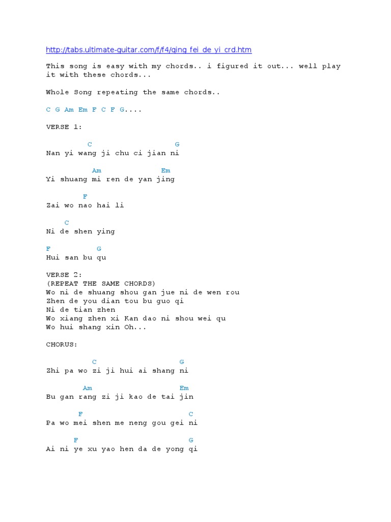 Meteor Garden Piano Chords - C g am em f em dm g7 chorus: