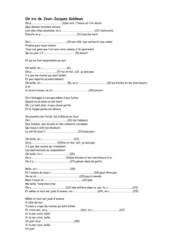On Ira Jean Jacques Goldman Lyrics / Em c g on s ra des milliers dans ce cas tu verras.