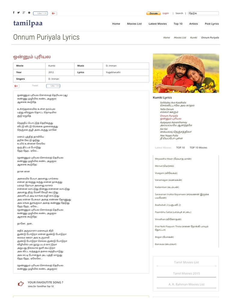 Onnum Puriyala Lyrics - Bài hát onnum puriyala do ca sĩ d.