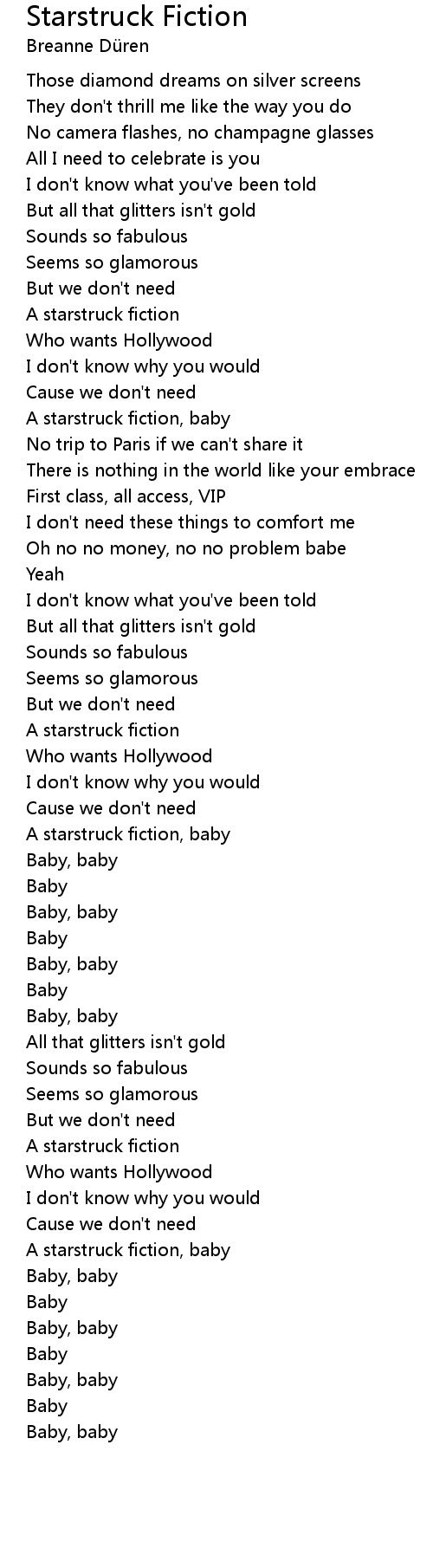 Starstruck Lyrics By Volumes I Got Used To Starstruck camera flashes, cover of magazines (oh, oh) starstruck designer sunglasses, living the dream as a teen driving fancy cars, hollywood boulevard hear the crowd calling your name, yeah.
